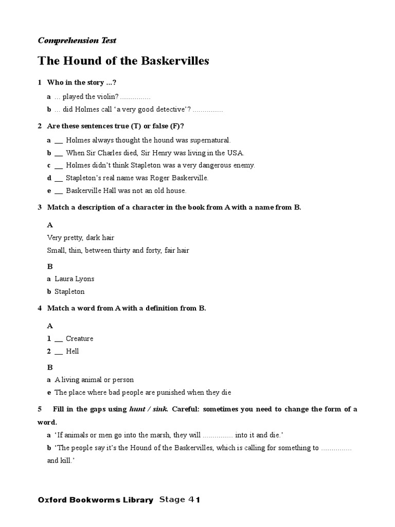 Test On The Hound Of The Baskervilles Esl Worksheet By Rosahi
